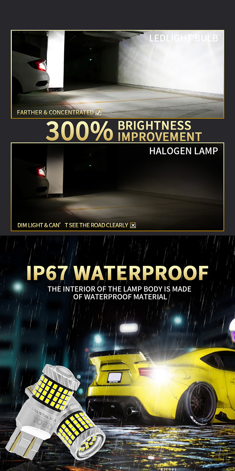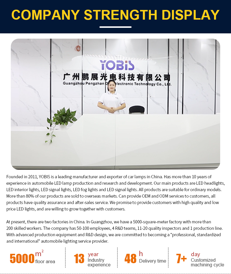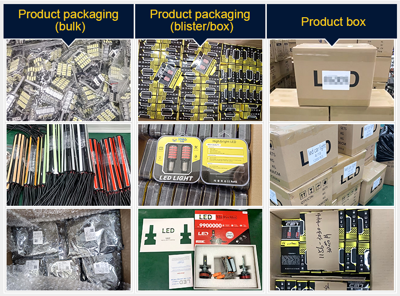 Q: Are you a manufacturer of automotive lighting? A: Yes. We have been a professional LED car lights manufacturer in China since 2011. We mainly offer LED headlight bulbs, car signal lights, fog lights, brake lights, T10 width lights, reversing lights, ambient lights, motorcycle LED bulbs, LED light bars, and other car LED bulb-related products.