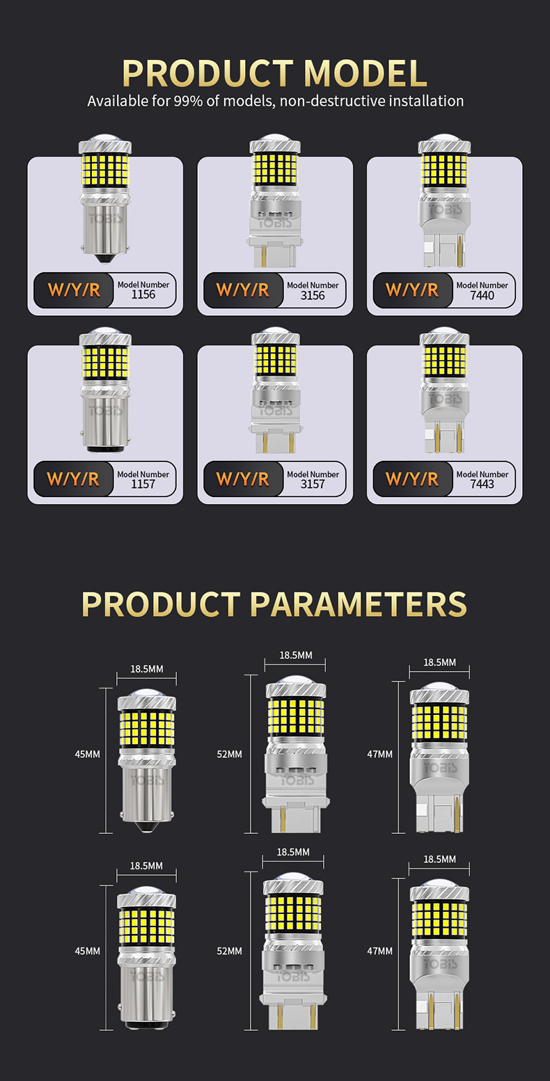 The YOBIS ZXSC-2016-87 LED Tail Brake Light Bulb redefines automotive lighting through cutting-edge efficiency and reliability. Engineered for modern vehicles, this 10W bulb delivers exceptional Compatible with Canbus systems and backed by a 2-year warranty, it seamlessly integrates into diverse vehicle models, ensuring compliance and longevity.