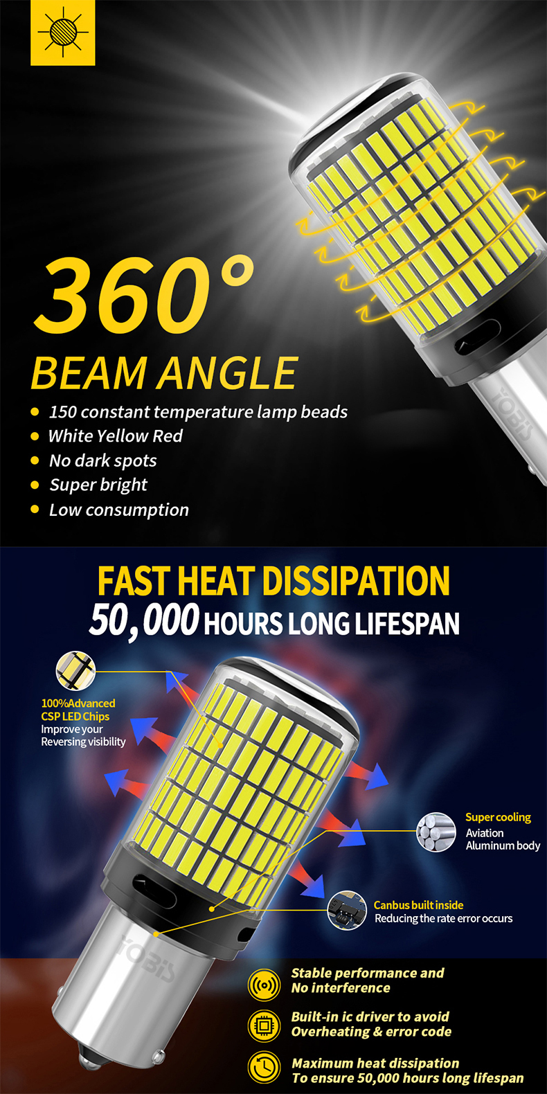①150 LED lamp beads, 360 degree light output,3 times brighter than original stock bulb.